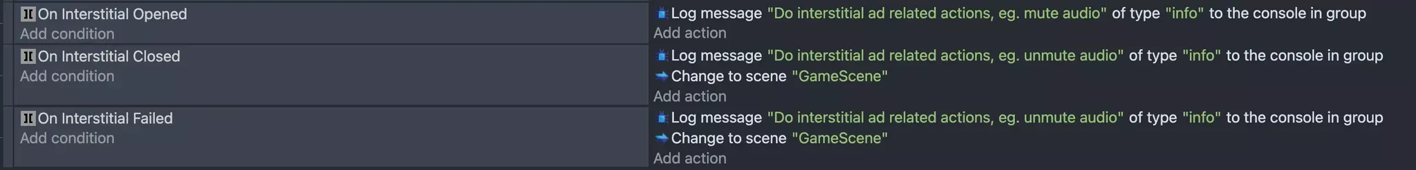 Once the extension is installed, you’ll gain access to a full suite of Conditions, Actions, and Expressions, ready to be used in your game. These powerful tools will allow you to integrate monetization, data handling, and platform features seamlessly into your game development workflow.