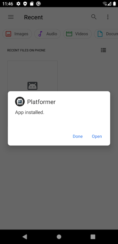 • An APK allows you to send the generated file to your phone and install it. It's ideal to quickly test your game on your Android device.